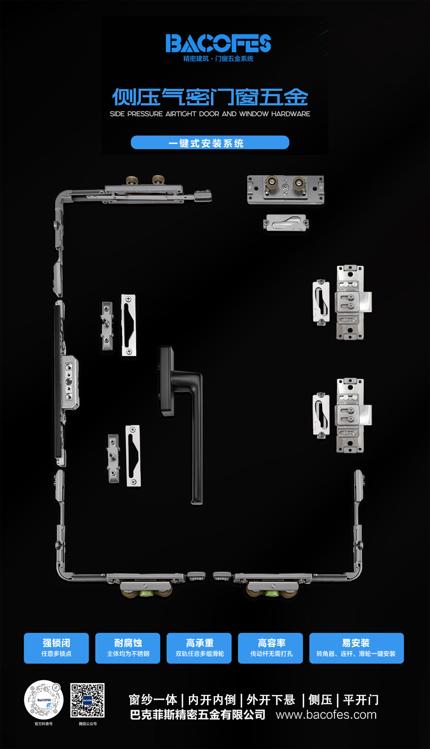 180° Concealed Inward-Opening and Tilting Hardware System